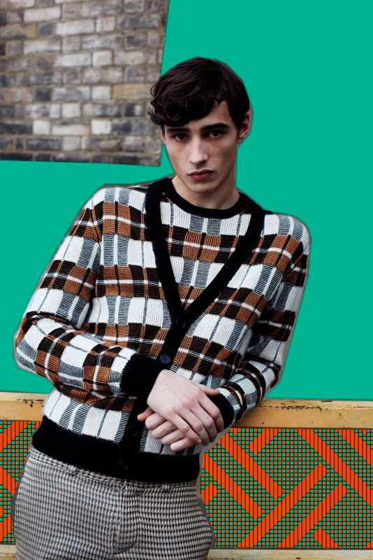 Bright colors, geometric prints and quilted textures modeled by Adrien Sahores complete this